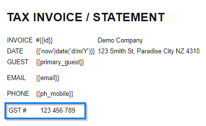 IRD GST Number = You can set this number as it appears since this won't change with your reservations.